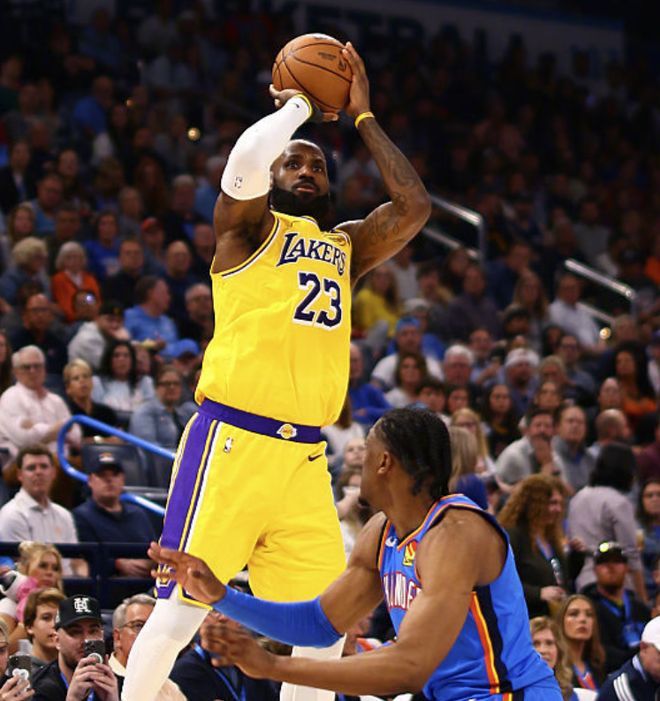 就说上赛季的比赛表现,詹姆斯面对雷霆那可真是毫不留情,4月份连打两场雷霆,詹皇一场28+7,一场19+7,这个事就发生在今年,就在半年以前。当时詹姆斯刚刚和总冠军雷霆队打过2场,场均能够拿下23.5分5篮板5助攻,就这个数据,你说他打雷霆打不过吗?如果有他在,雷霆不可能随便欺负湖人锋线。
