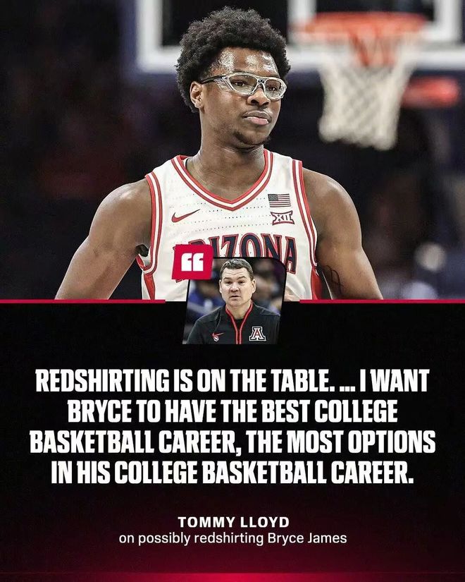 劳埃德说:“我们在保护他选择红衫的机会,我希望布莱斯拥有最好的大学篮球生涯,长期来看有最多的选择,不论那是什么样子。你让布莱斯在这样的比赛里出场三分钟,就等于消耗了一年的资格。”