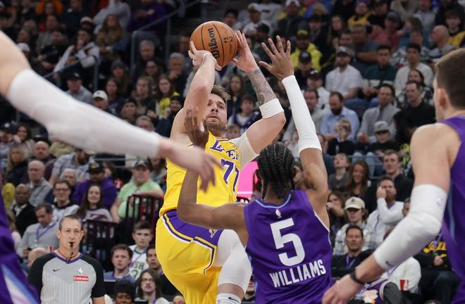 下半场爵士进攻效率下滑,湖人这边东契奇第三节单节砍下17分3篮板3助攻,湖人单节赢了爵士15分,防守上强度后球队实力差距就出来了,第四节爵士主教练多次摆出小阵容,詹姆斯连续4次妙传分差来到20分开外,还有半节时间比赛正式失去悬念,这样全场打完湖人主场,下半场攻防发力以140-125毫不费力逆战了爵士!